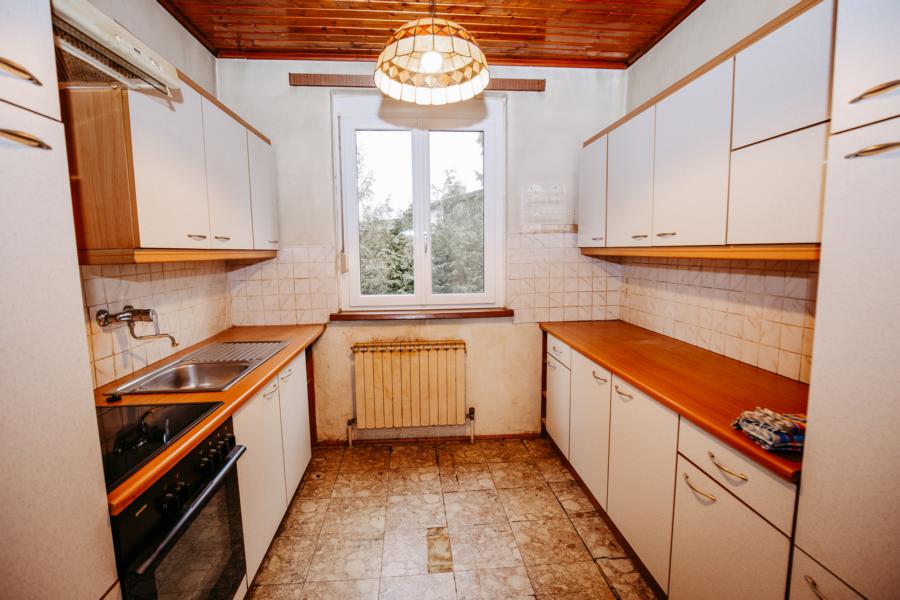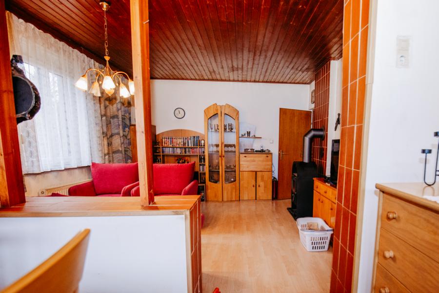 Wohnzimmer mit Essbereich, Einbauküche mit Geräten, Fliesenbad mit Dusche, WC,