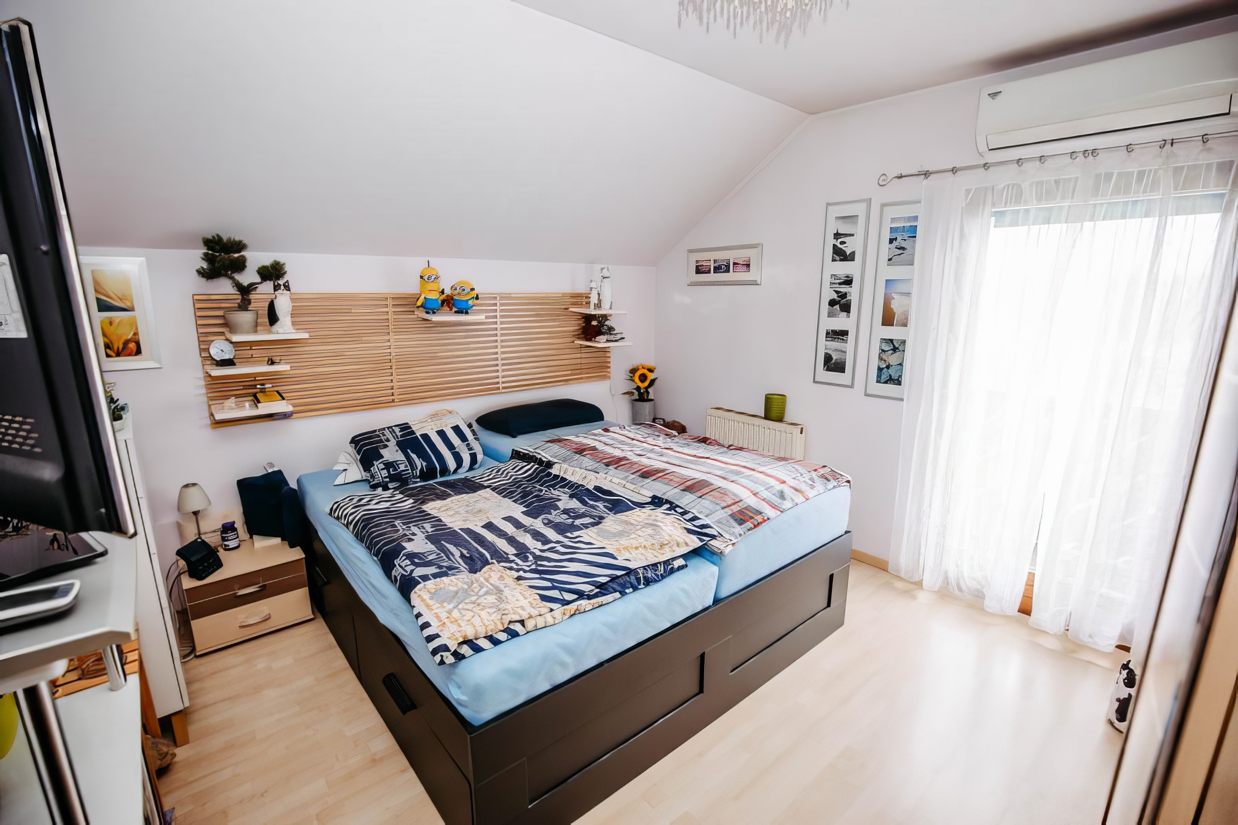 Obergeschoss: 3 Zimmer, davon 2 mit Balkonausgang, Bad + WC